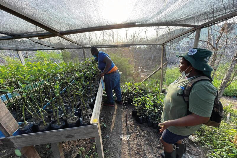 Producto de la coordinación interinstitucional, se han adelantado actividades como limpieza de áreas con material vegetal muerto, traslado de plántulas dentro de manglares y el establecimiento de dos viveros exclusivos de manglar: en Jones Point y en McBean Lagoon, desde donde se están madurando plántulas de R. mangle. Para nutrir estos viveros, bajo la coordinación de CORALINA e INVEMAR, se colectaron 7.300 propágulos del Parque Old Point de San Andrés que fueron trasladados a Providencia, donde actualmente están siendo madurados en los viveros construidos y esperan ser sembrados en diferentes sectores de la isla de acuerdo a su prioridad de restauración.